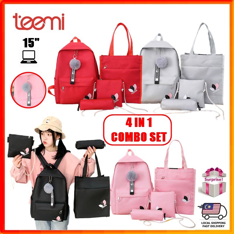 Teemi Women Combo 4 In 1 Backpack Tote Bag Small Pouch Soft Pencil Case Sweet Pastel Candy Color Beg Galas Sandang Wanita College Student Teenager Girl Lady Outdoor Travel Fashion Lazada