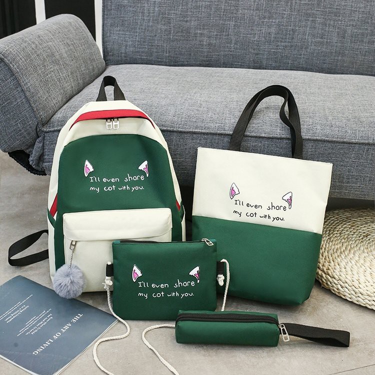 4 In 1 Set Canvas Backpack Women School Bags For Teenagers Backpack Female Travel Bags Girls Boys Satchel Mochila Shopee Malaysia